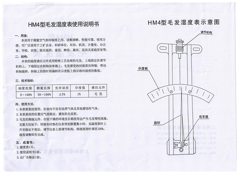 结构简单,用人体毛发作为感应元件,灵敏度高,可jing确测量,在冬季不能用干湿球温度表来测量时毛发温度表就成为测量相对湿度主要仪器。
